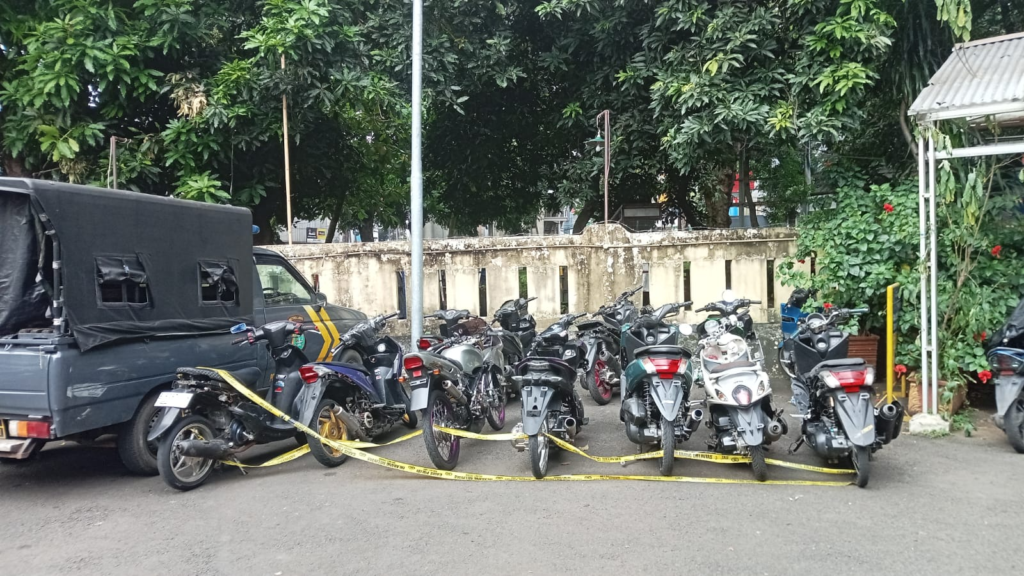 Berhasil dijaring ada 13 Sepeda Motor berbagai jenis diantaranya menggunakan Knalpot Brong yang tidak sesuai standar kendaraan tersebut.