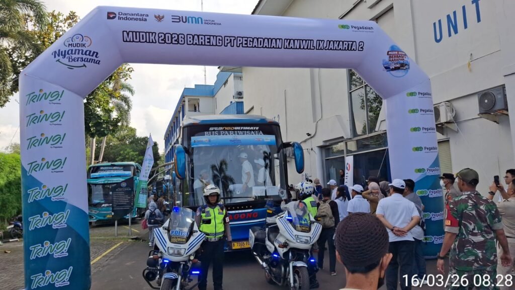 Jakarta Selatan – Personel Polsek Kebayoran Lama bersama unsur tiga pilar melaksanakan kegiatan monitoring dan pengamanan kegiatan Mudik Gratis yang diselenggarakan oleh PT Pegadaian Kanwil IX Jakarta 2 di lingkungan Universitas Budi Luhur, pada Senin (16/3/2026).
